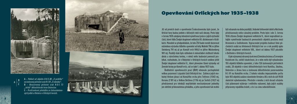Orlické hory a Náchodsko, jimž je věnován 2. svazek úspěšné edice „Pohraniční pevnosti“, představovaly již od počátečních úvah o opevňování Československa jedno z klíčových míst naší obrany. Svědčí o tom i skutečnost, že v prostoru mezi Zemskou bránou a Červeným Kostelcem mělo být vybudováno 155 objektů těžkého opevnění, z toho 126 izolovaných pěchotních srubů, jedna dělostřelecká pozorovatelna a 28 objektů v rámci dělostřeleckých tvrzí Hanička, Skutina, Dobrošov a Jírova hora. Z tohoto počtu bylo 103 objektů zadáno stavebním firmám a 86 z nich do září 1938 skutečně vybetonováno.