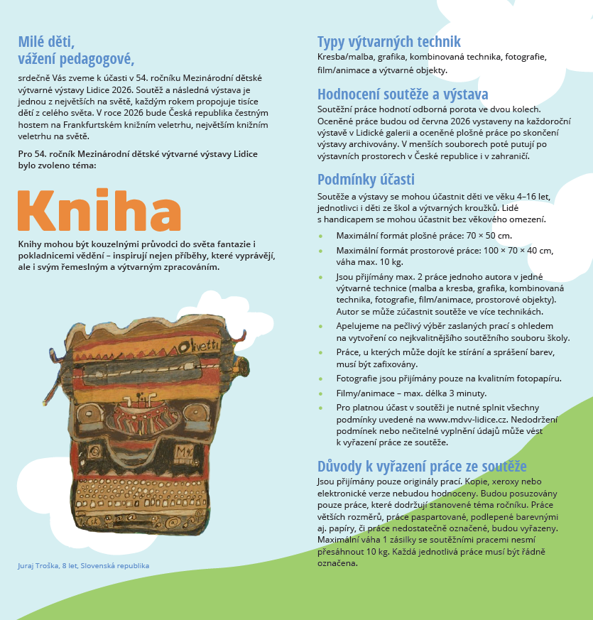 Výzva pro malé umělce - 54. ročník Mezinárodní dětské výtvarné výstavy Lidice 2026