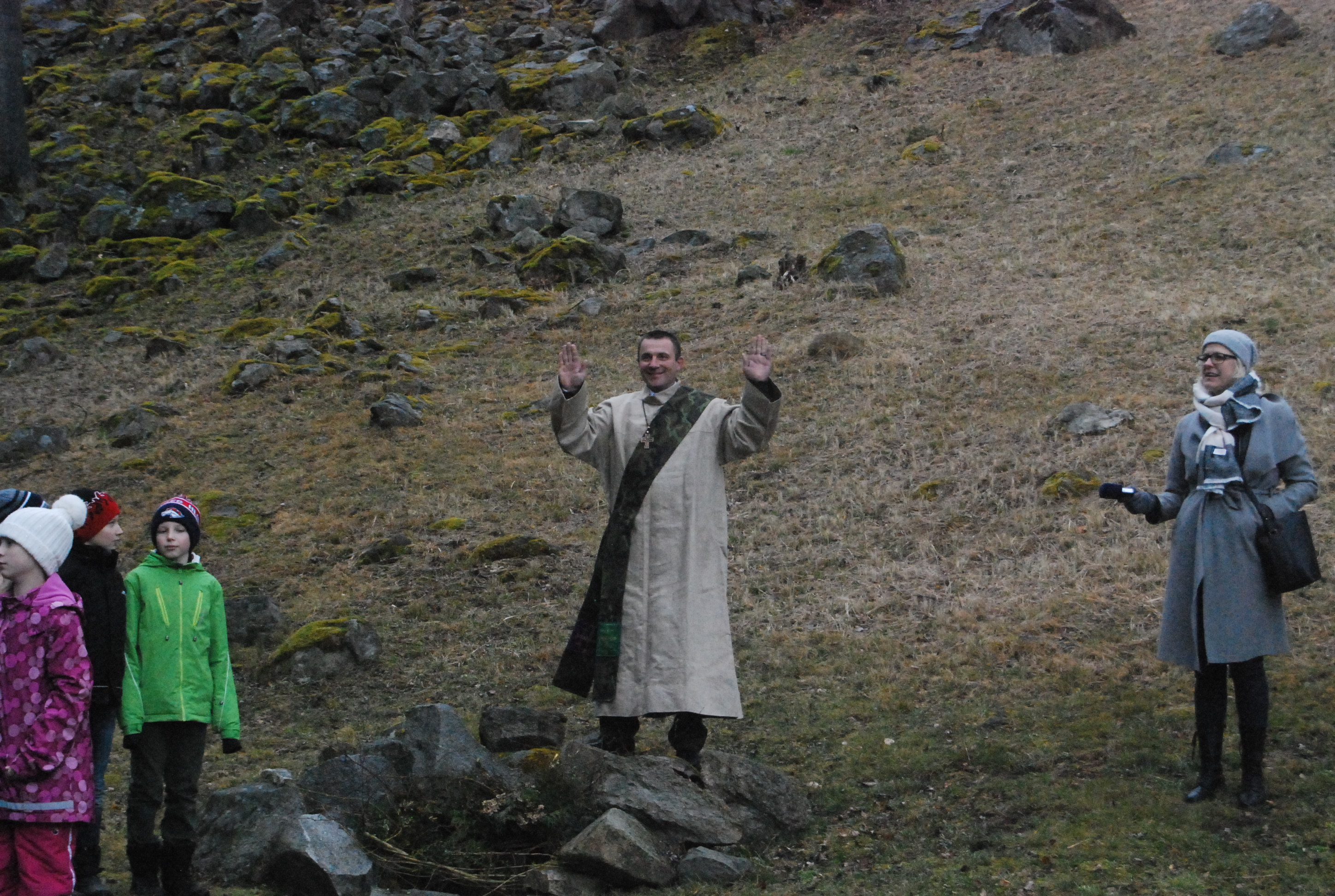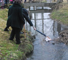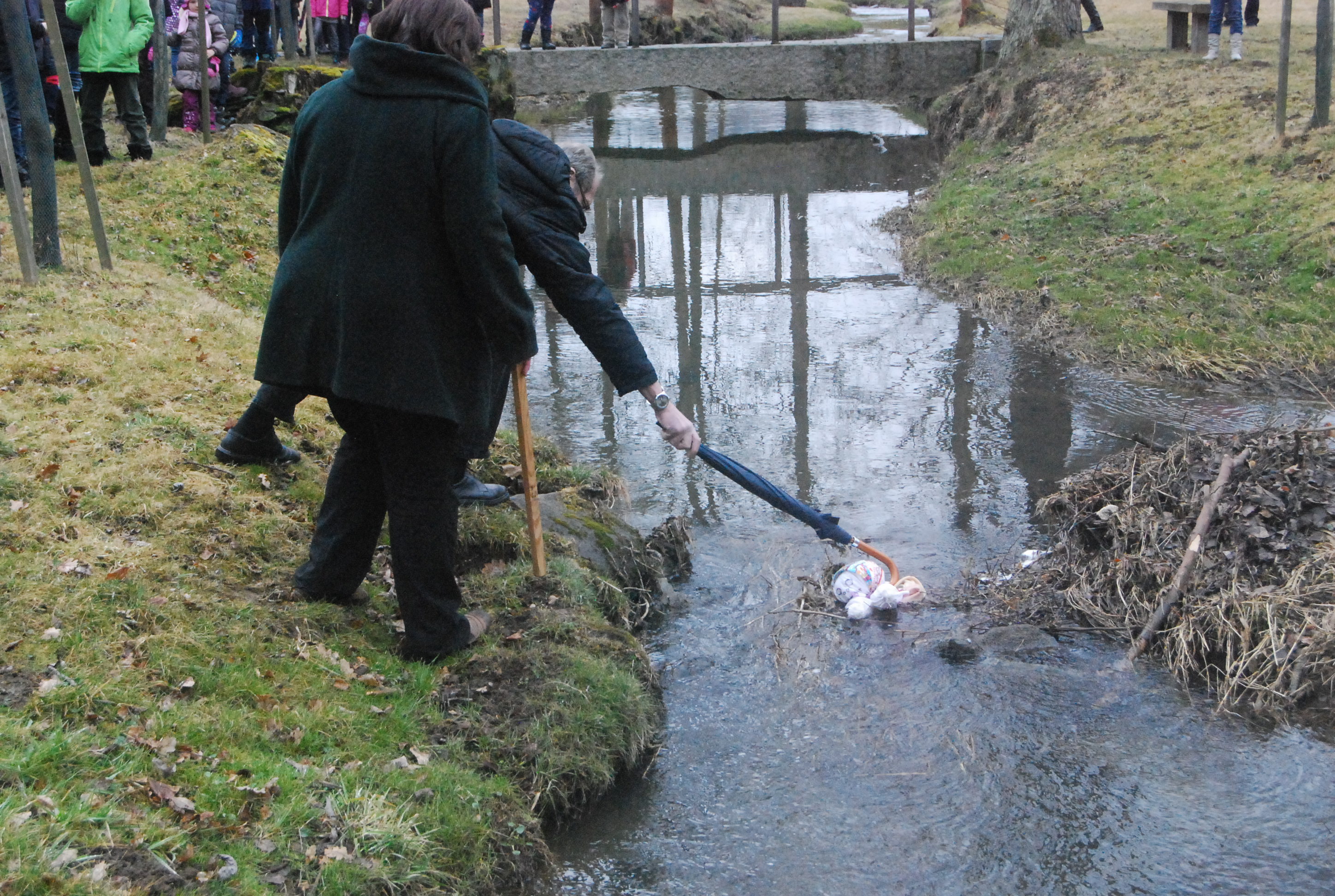 Předposlední část programu proběhla u ležácké studánky na pietním území, kde vystoupily děti ze ZŠ Včelákov a ZŠ Miřetice a vojenský kaplan npor. Mgr. Milan Novotný studánku posvětil. Po svém pěveckém vystoupení a po posvěcení ležácké studánky se děti z místních ZŠ ujaly vynesení Morany a tento symbol zimy a smrti poslaly po proudu potoka Ležák daleko pryč...