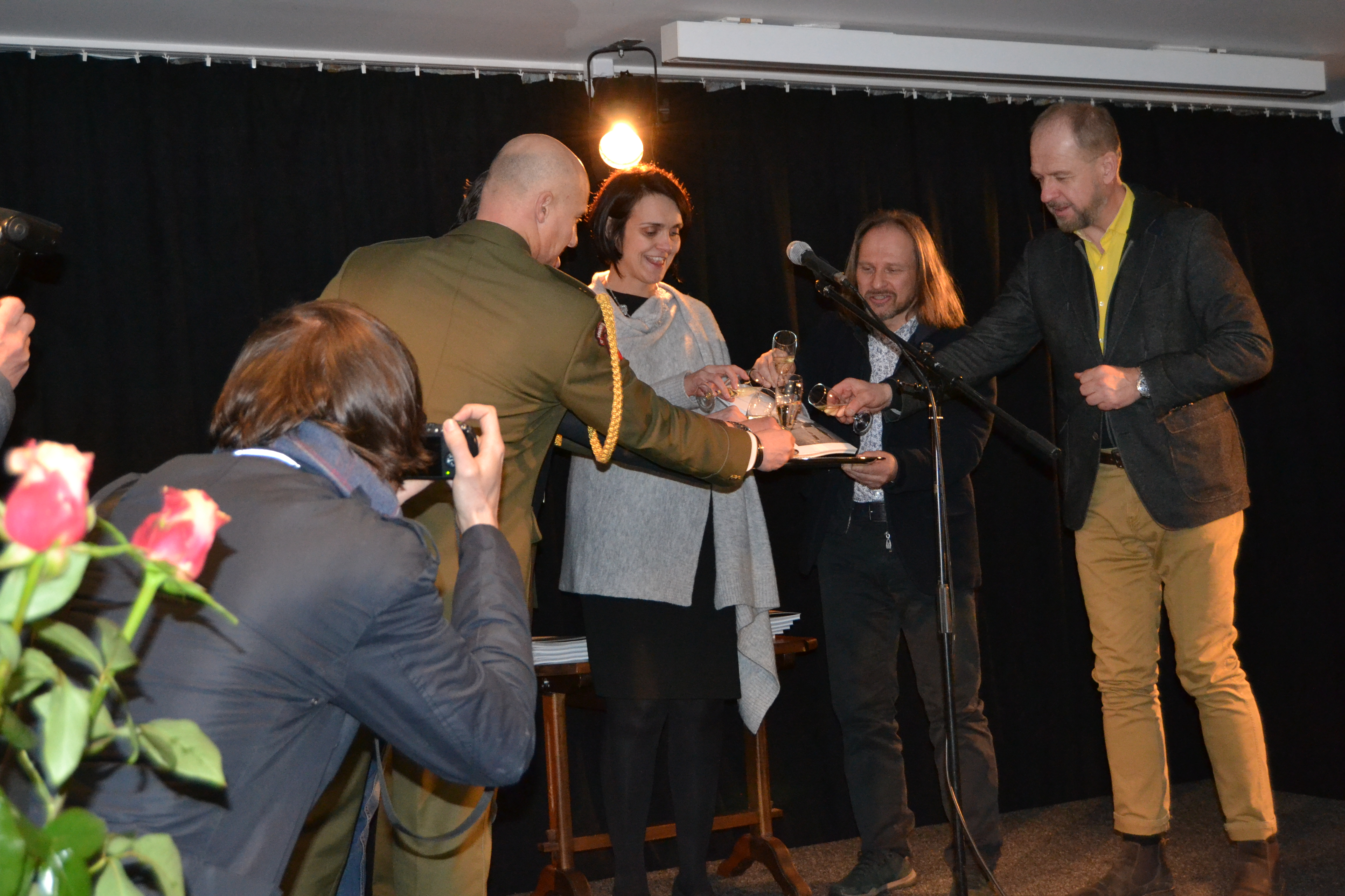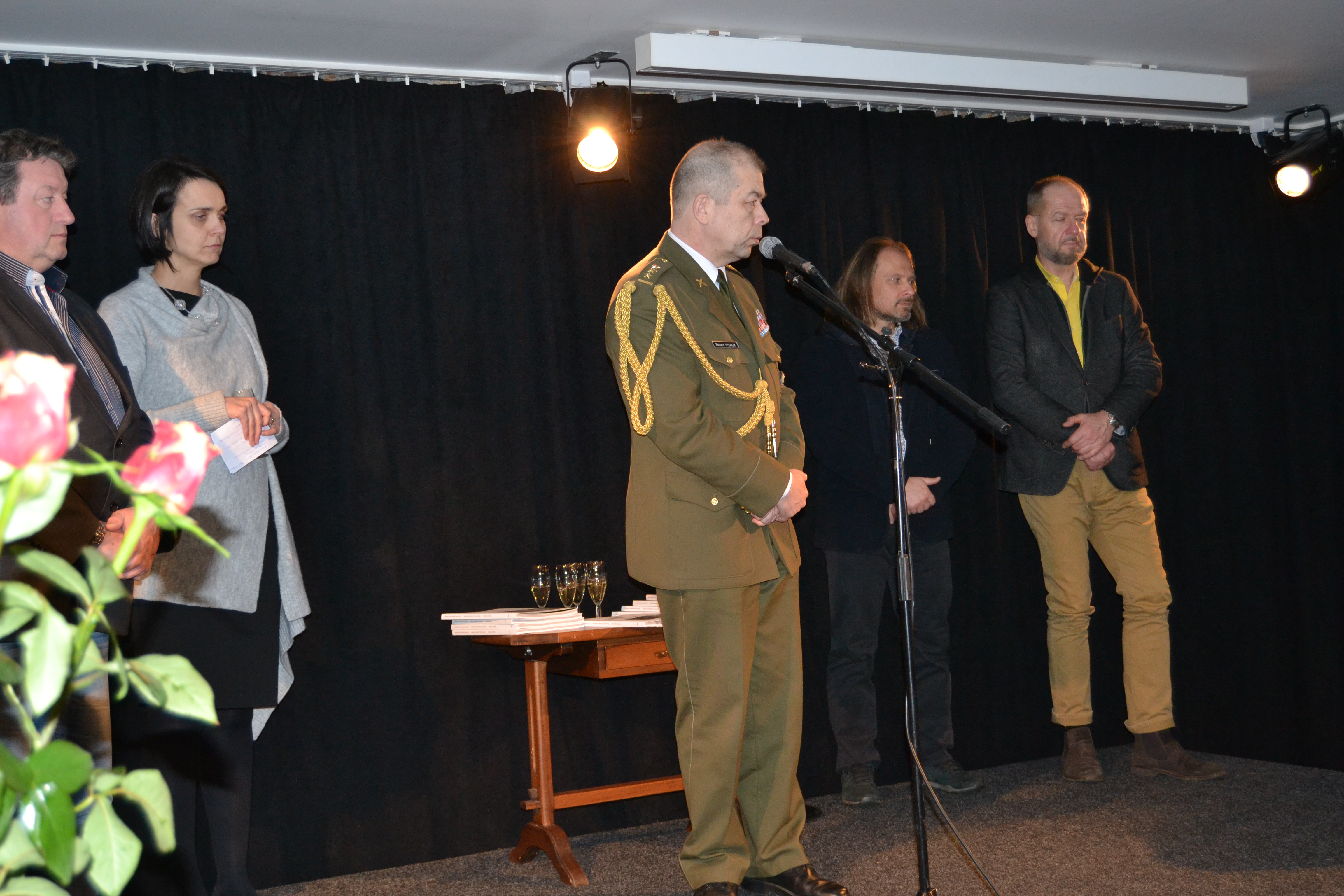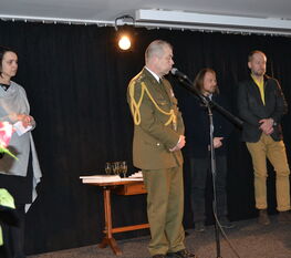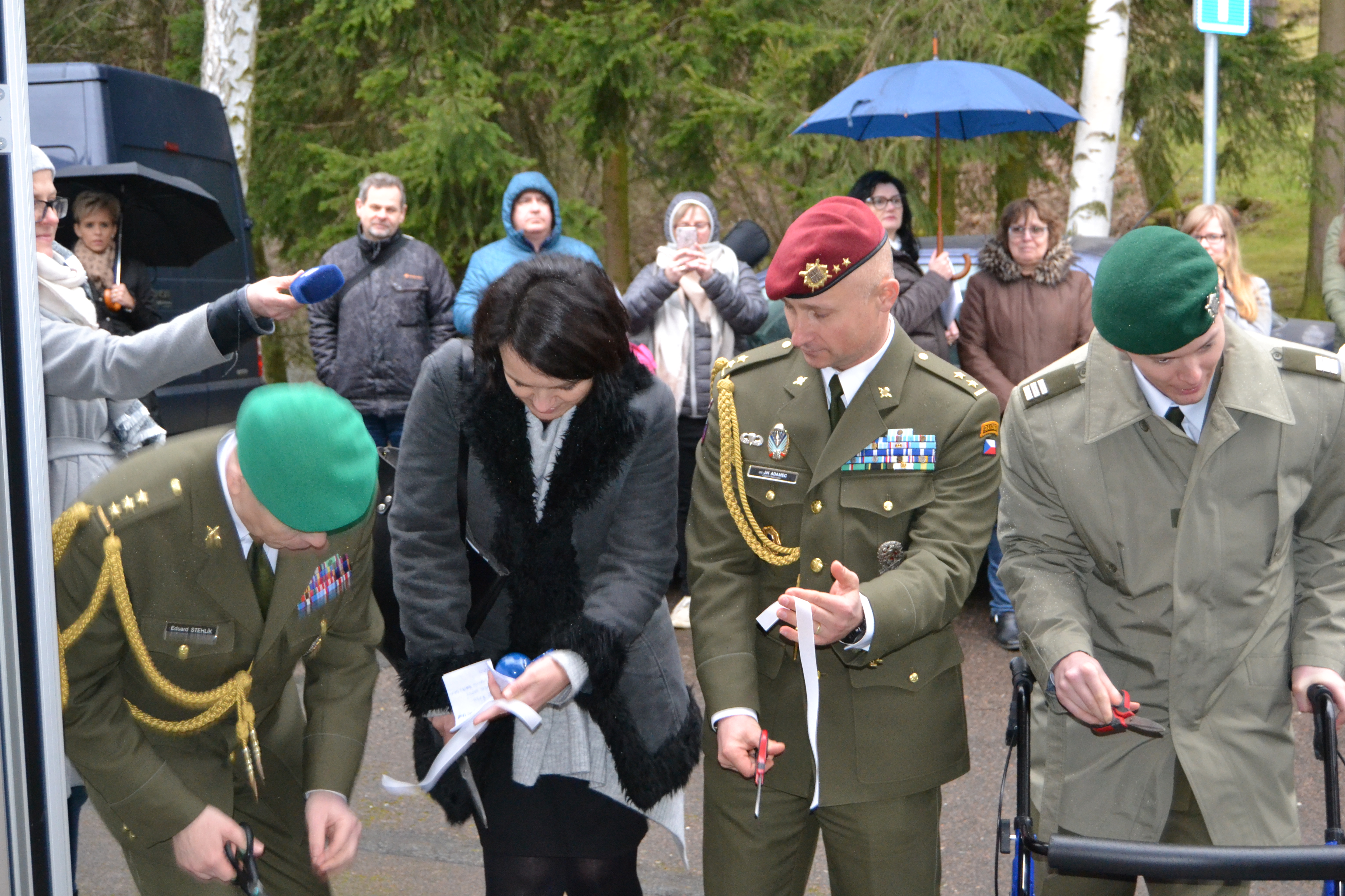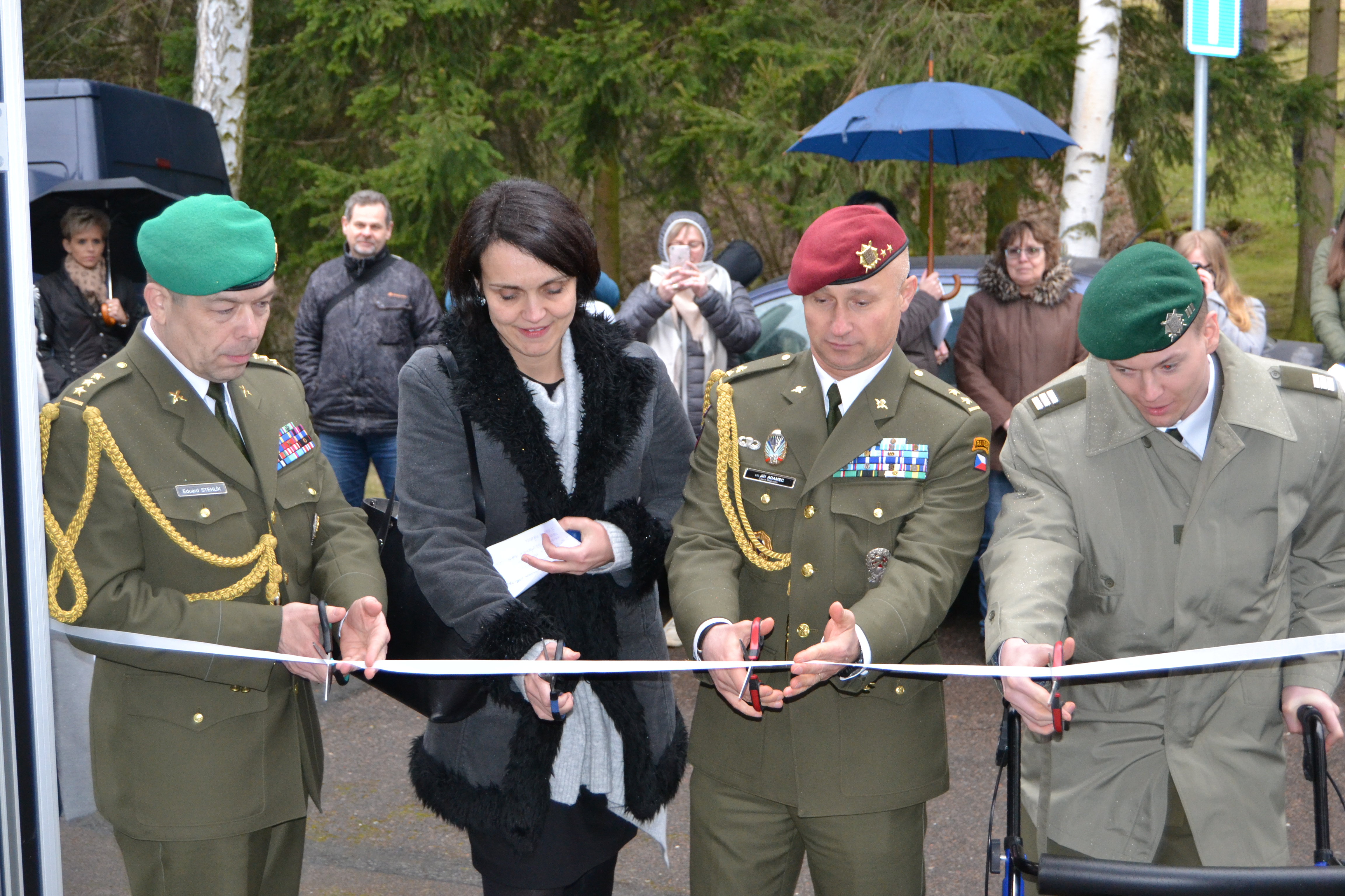 Po přednášce Plk. Stehlíka jsme se všichni přesunuli k Minigalerii, kde byla slavnostně přestřižena páska a výstava "Vše pro vlast" byla tak oficiálně zpřístupněna veřejnosti.