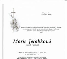 Zemřela paní Marie Jeřábková V neděli 25. února zemřela paní Marie Jeřábková, rozená Šťulíková, přeživší ležácké dítě. Rodině a všem pozůstalým vyjadřujeme nejhlubší soustrast!