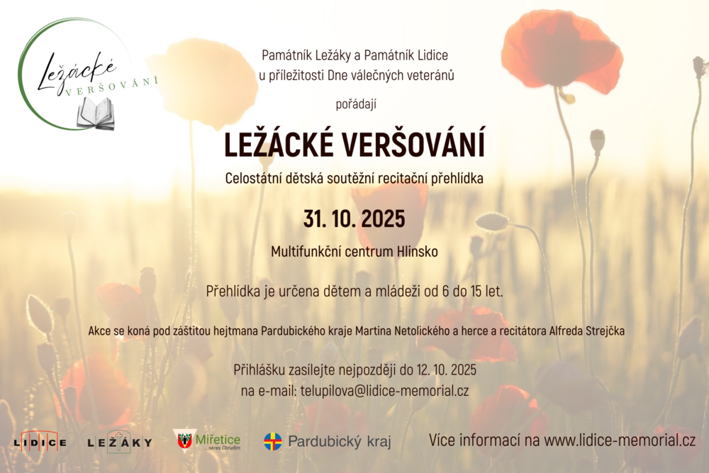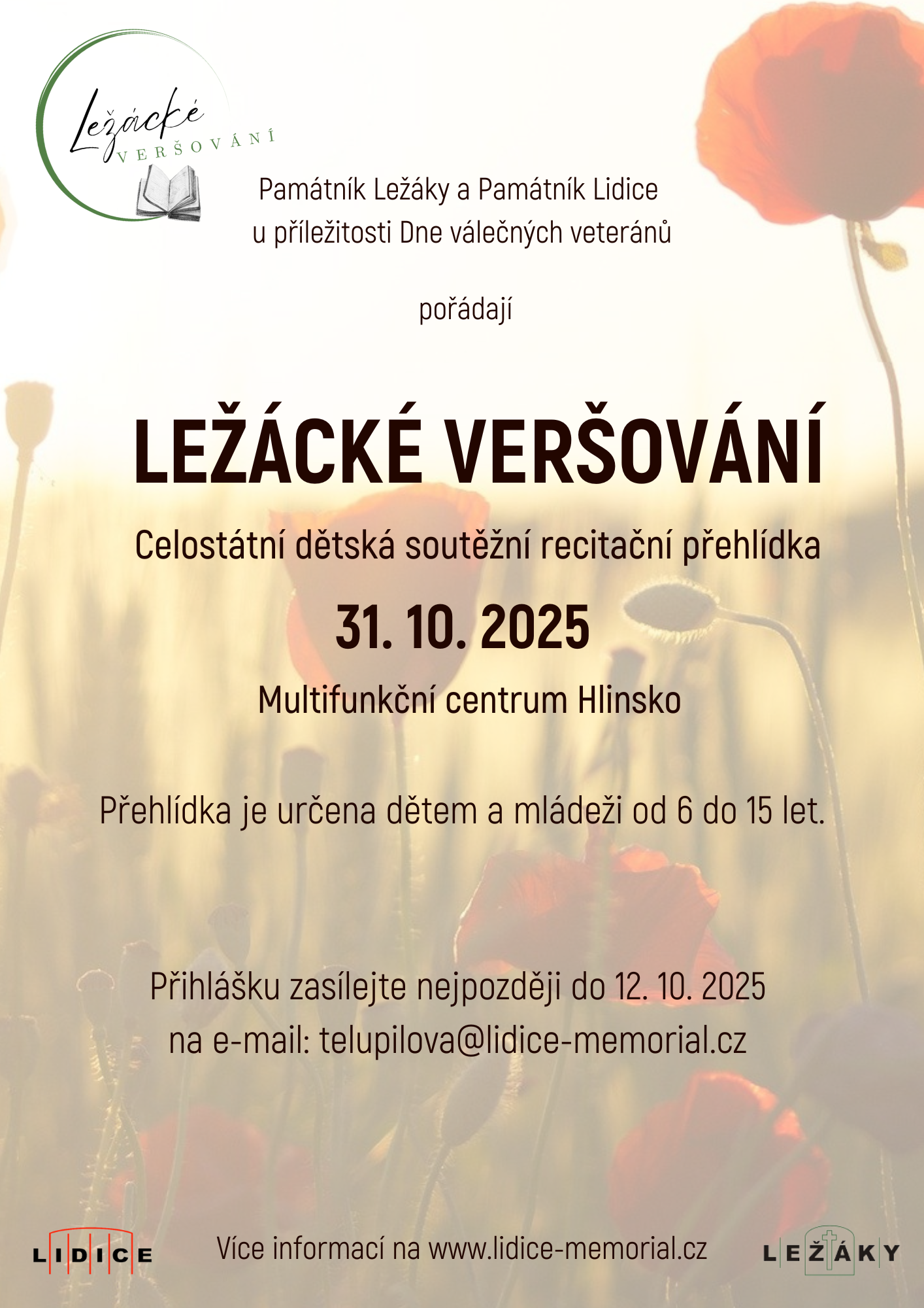 U příležitosti listopadové připomínky Dne válečných veteránů pořádá Památník Ležáky ve spolupráci s Památníkem Lidice od roku 2014 soutěžní setkání mladých recitátorů, které je věnováno památce ležáckých dětí zavražděných 25. července 1942 v Chelmnu. V roce 2021 se soutěž přesunula z muzea Památníku Ležáky do Multifunkčního centra v Hlinsku, které nabízí skvělé divadelní prostředí a velkou scénu pro všechny vystupující.